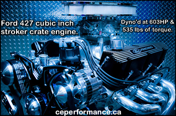 CE Performance custom built this Ford 427 cubic inch stroker motor with 603 HP and 535 pounds of torque.